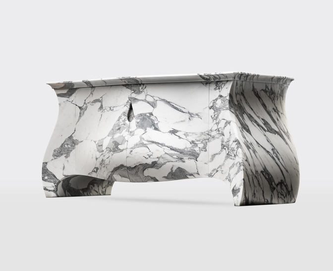 Ian’s remarkable skills have resulted in the most stunning marble furniture. With over 5 years in concept development, this unique marble cabinet has been created from a single block of Italian Arabescato marble. Truly a world’s first, this amazing piece creates a stunning focal point for those who appreciate exquisite craftsmanship and sculptural elegance.
